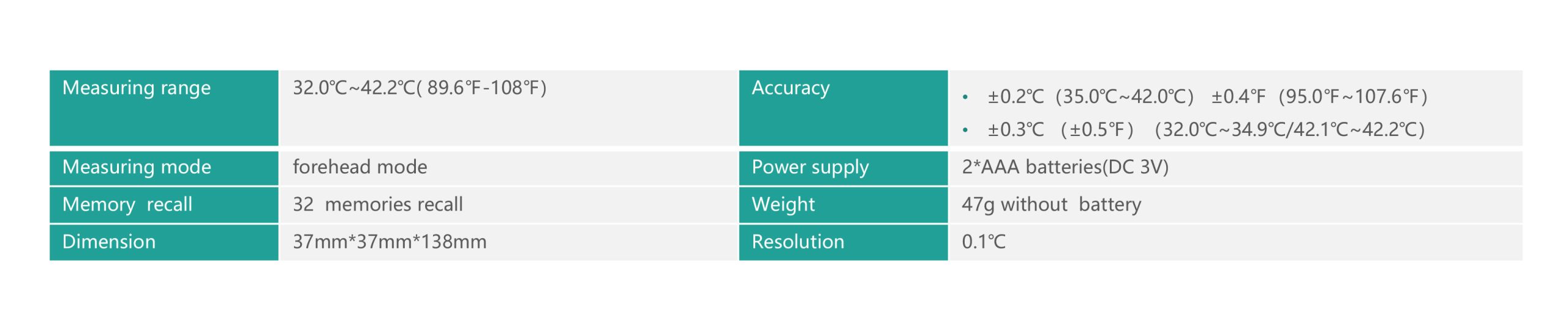 محدوده اندازهگیری 42.2 - 32.0 درجه سانتیگراد