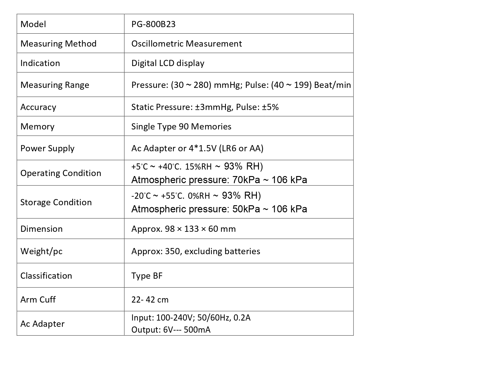 Specifications